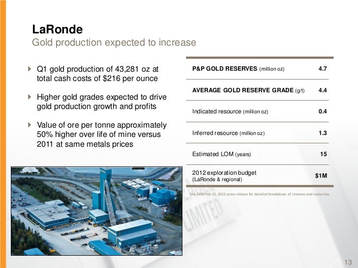 Per share, an 80 percent increase in the average cost per ton of gold over the past six years, and a 21 percent decline in global average grades of gold since 2005. Cash taxes per ounce of production have increased dramatically, and, according to CIBC World Markets, the replacement cost for an ounce of gold is now $1,500, with $1,700 as a ... Doc Viewer