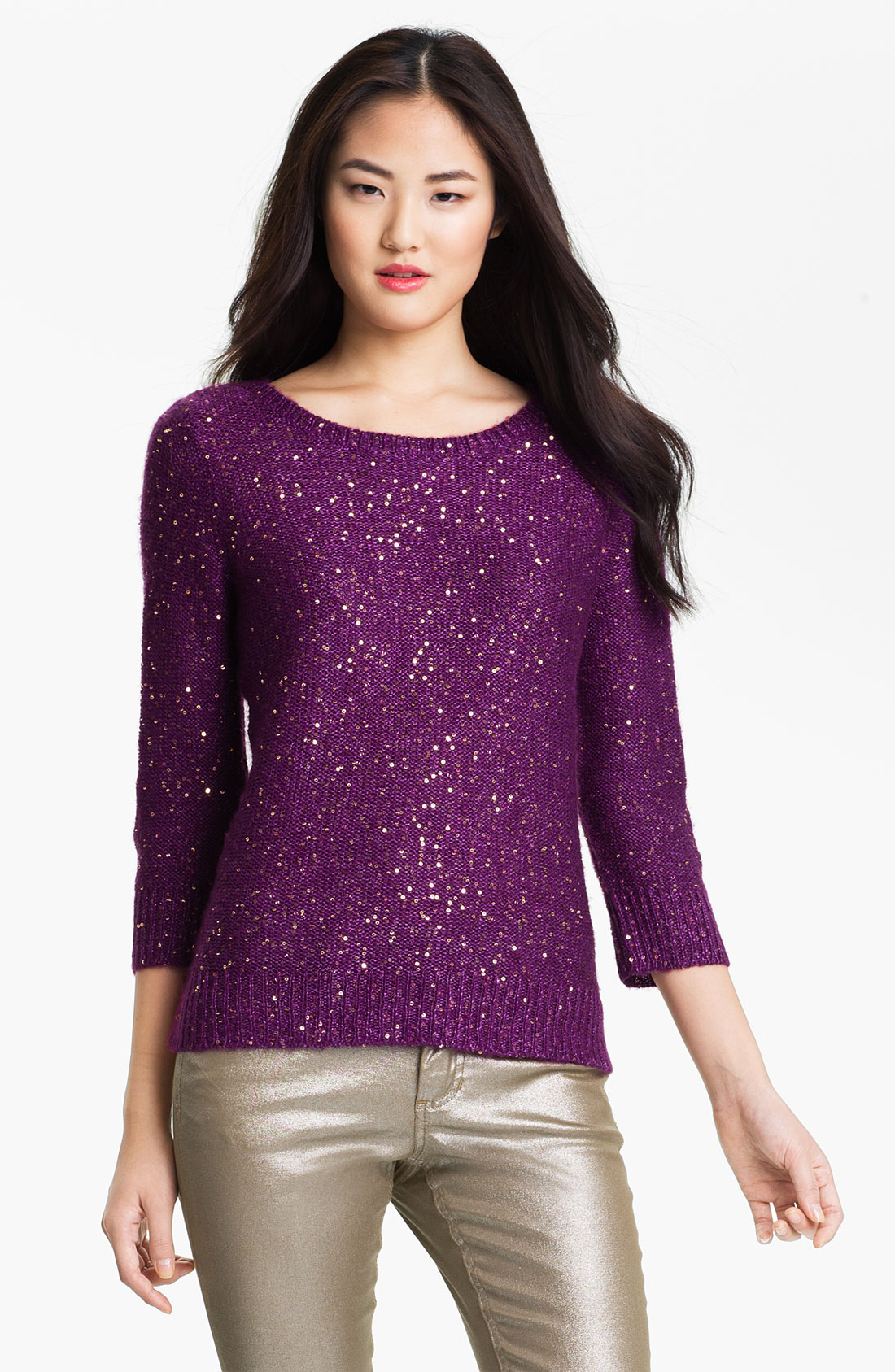The grown-up reds are followed by two extremes of the purple family that intrigue the eye and inspire the imagination. Mauve Mist, Yellow Gold and Rose Gold combined with jewel tones cashmere cable-knit sweater with crystals embedded into the cable knit. ... Fetch Here