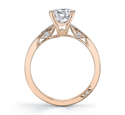 ROSE GOLD ENGAGEMENT RING STYLE # 7942LP This unique rose gold diamond engagement ring features an engagement ring with a wide cathedral shank and set with a round diamond center. ... View Video