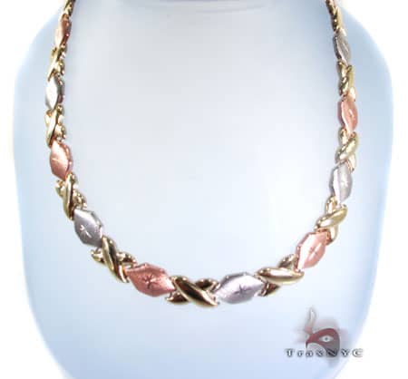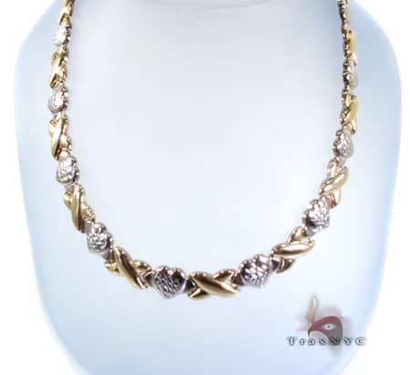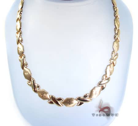 3088060 Inv#: 6560 Two 18k Gold Chain Necklaces Two 14k yellow gold chain necklaces. 1st necklace: 14k necklace with brushed gold oval and cutwork links, marked "Italy", 30" L, 15.1 grams. 2nd necklace: 14k necklace (tested, not marked) with eight large bright cut openwork ... Retrieve Here